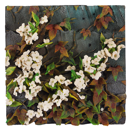 PIERO GILARDI Torino 03/08/1942 Ciliegio fiorito, 2000 poliuretano espanso cm. 50x50, firma, titolo, anno e dedica dell'artista ad personam al retro, dichiarazione d'autenticità e dedica dell'artista su foto, entro teca in plexiglass.