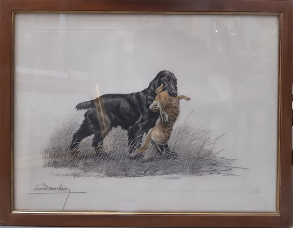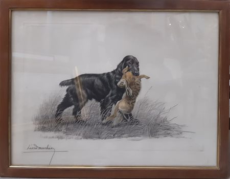 Léon Danchin (1887-1938) - Due acqueforti a colori raffiguranti Cocker Spaniel (fogli cm 61x89 e 50x70),firmate e numerate a matita in basso, in cornici (lievi difetti)
