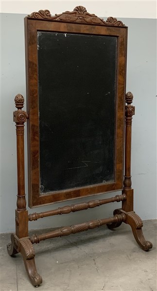 Psiche da terra con cimasa intagliata e sagomata. Montanti torniti terminanti a vasi con fiamme, secolo XIX (h cm 200) (difetti)