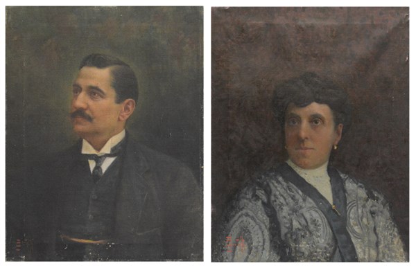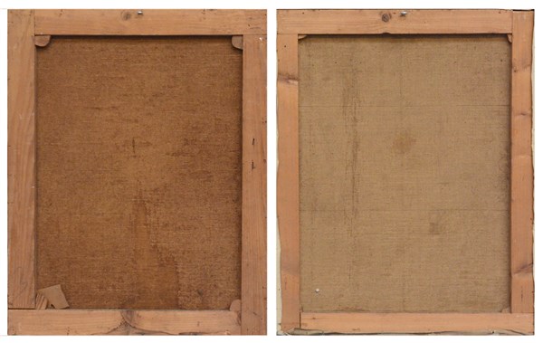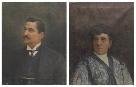 "Gentiluomo e gentildonna" coppia di dipinti ad olio su tela (cm 70x55) Firmati in basso a sinistra (difetti)