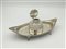 Calamaio a "barchetta" in argento con bordura cordonata cesellata a fiori, port