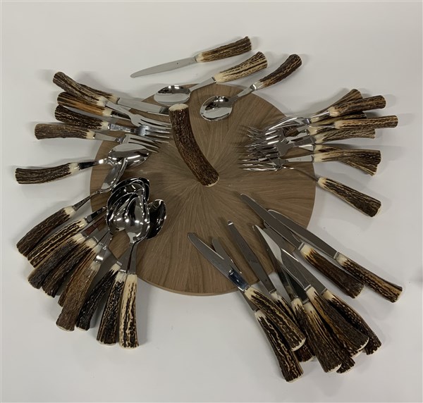 Servizio di posate in acciaio con manici in corno composto da ventiquattro forc