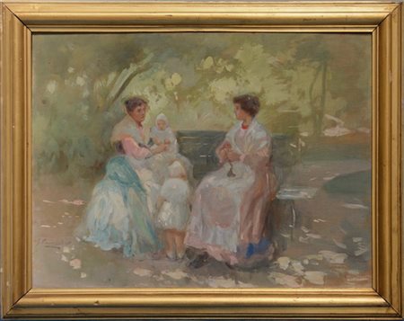 "Le madri" olio su cartone telato (cm 45x60) Firmato in basso a sinistra. In cornice