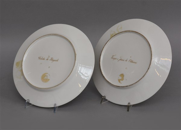 Manifattura del secolo XIX, coppia di piatti in porcellana decorati nel cavetto
