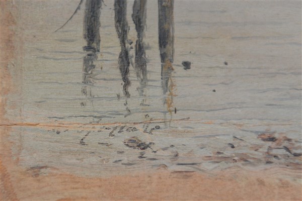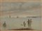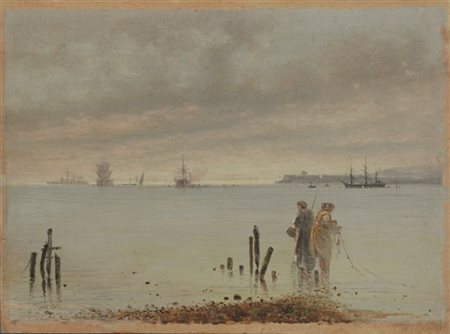 Agostino Fossati "Marina con pescatori" olio su tavola (cm 22.5x30) Firmato in b