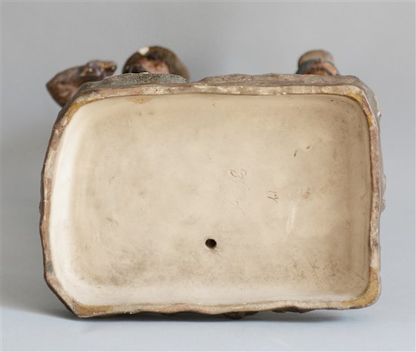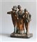 Manifatura di Caltagirone della fine del secolo XIX "Figure a passeggio" gruppo in terracotta decorata in policromia (h cm 37) (difetti)