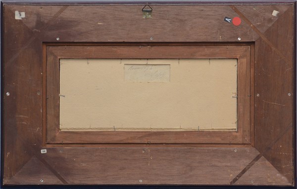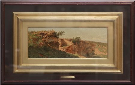 "Campagna romana" 1874, olio su carta (cm 16x40) Firmato e datato al retro. In cornice