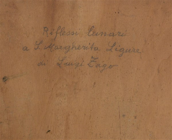 Luigi Zago "Riflessi lunari a Santa Margherita Ligure" olio su compensato (cm 12