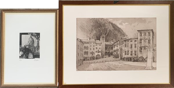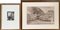 Lotto composto da due acqueforti e un disegno autori e misure diversi. In cornici