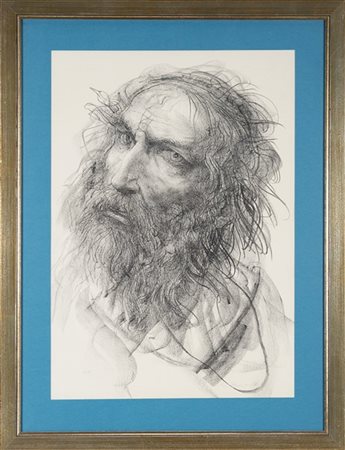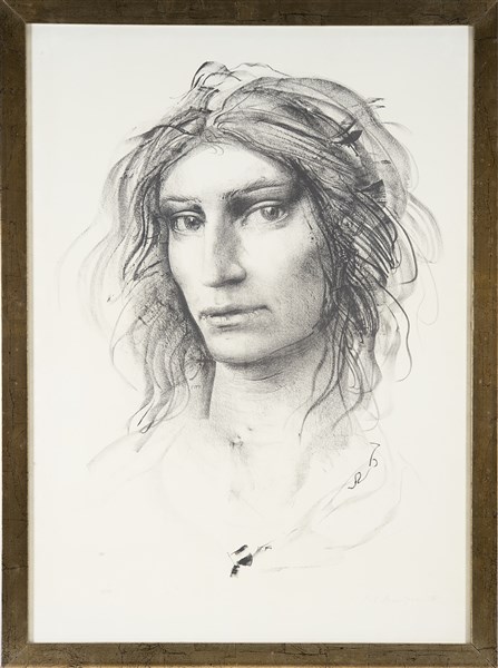 Lotto composto da due litografie raffiguranti volto femminile (cm 79x57) e maschile (cm 81x61,5), di misure diverse, entrambe firmate in basso a matita e numerate rispettivamente 49/99 e 46/99. In cornici