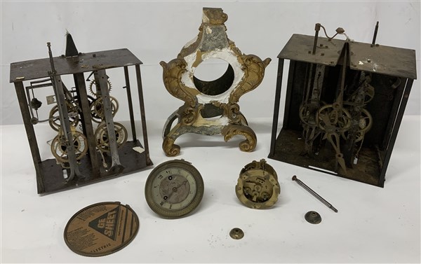 Cartone contenente due meccanismi di morbier e due meccanismi e quadranti di pa