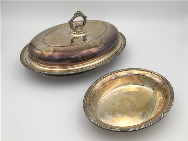 Lotto composto da una legumiera con coperchio ed una ciotola in argento, Argent