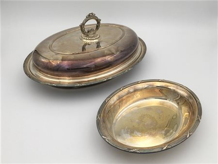 Lotto composto da una legumiera con coperchio ed una ciotola in argento, Argentiere Cesa. Titolo 925 (gr 1750 ca) (lievi difetti)