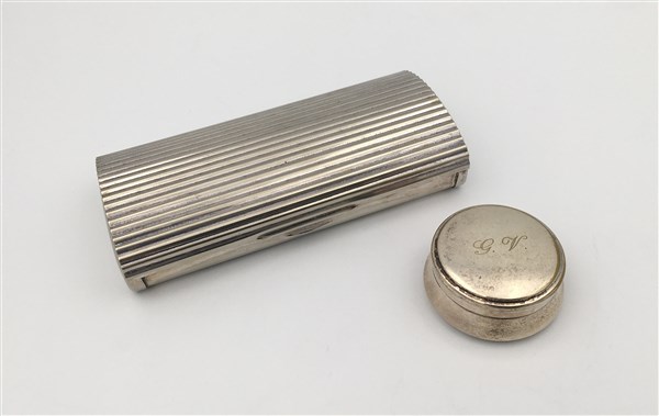 Lotto composto da una scatolina con coperchio inciso con iniziali e un portaocc