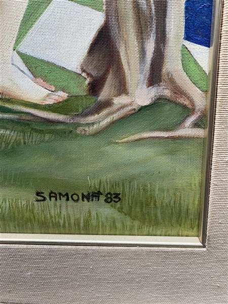 M. Samonà Furcht, "Adamo ed Eva", olio su tela (cm 50x70), firmato e datato 83 in basso a destra, in cornice