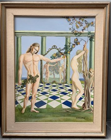 M. Samonà Furcht, "Adamo ed Eva", olio su tela (cm 50x70), firmato e datato 83