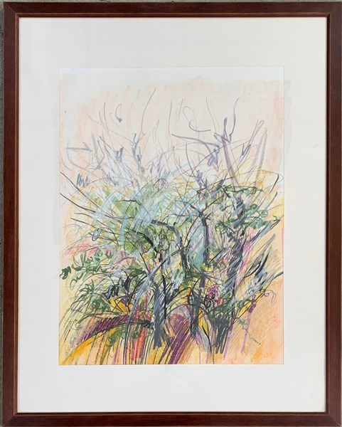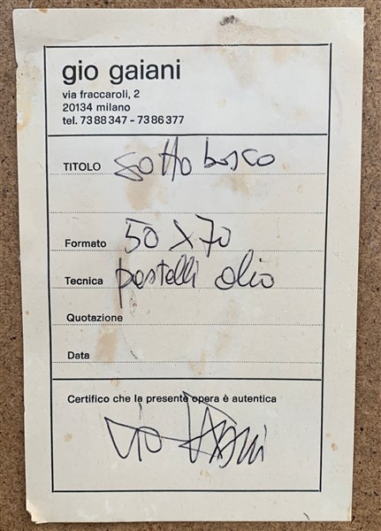 Gio Gaiani "Sottobosco" pastelli su carta (cm 50x70) firmato in basso a sinistra; firmato sull'etichetta al retro. In cornice