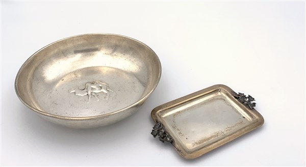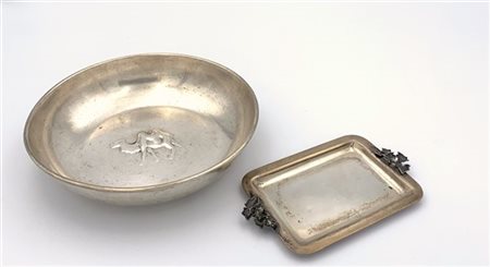 Lotto composto da un vassoio ed uno svuotatasche in argento titolo 925 (g 400) (difetti)