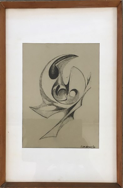 Totò La Scala "Senza titolo" disegno a china su carta lucida (cm 30x20) firmato in basso a destra, in cornice