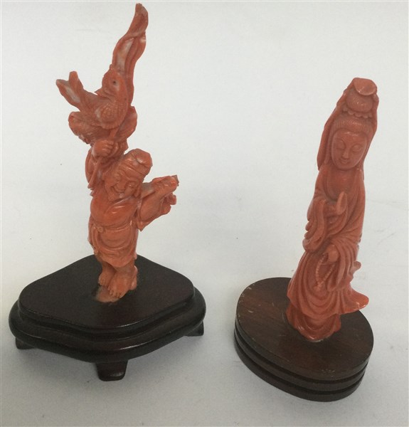 Due intagli in corallo rosso (lievi difetti) Cina, inizio secolo XX (h. max 11,