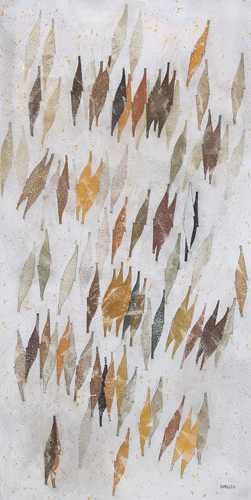 ENRICO SIRELLO Livorno 1930 - Livorno 26/02/2012 Passato e presente (murale), 2000 pigmento su intonaco a pomice di Lipari su tela cm. 120x60, firma in basso a destra, titolo, firma e tecnica al retro, opera priva di cornice.