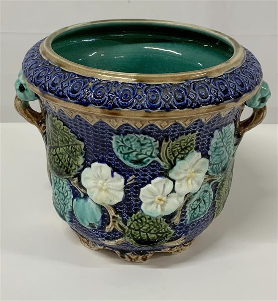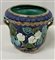 Fioriera in ceramica policroma decorata in rilievo a rami, fiori e foglie (h cm 20) (difetti).
