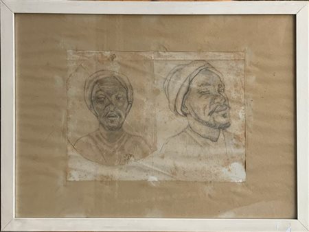 Orientalista del XIX secolo "Teste virili" coppia di disegni a matita nera, pun