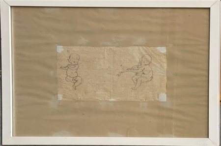 Ignoto del secolo XIX "Putti musicanti" penna, inchiostro bruno e tracce a matita su carta (circa cm 13x24). In cornice