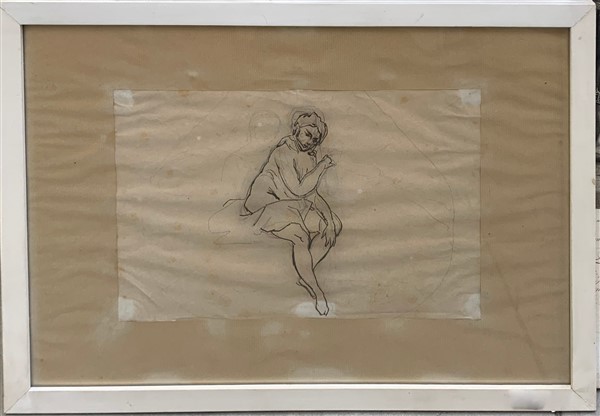 Ignoto del secolo XIX "Donna seduta" penna e inchiostro bruno e tracce a matita (cm 19x29 circa). In cornice