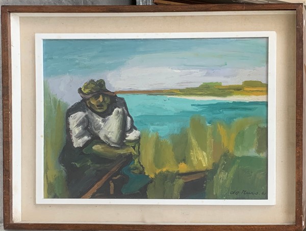 Antonio De Muro "Pescatore del lago" olio su masonite (cm 40x50) firmato e datat