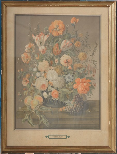 Joseph Nigg (Vienna 1782 - 1863) "Composizione di fiori" cromolitografia (cm 80x60 circa, il foglio). In cornice (difetti)