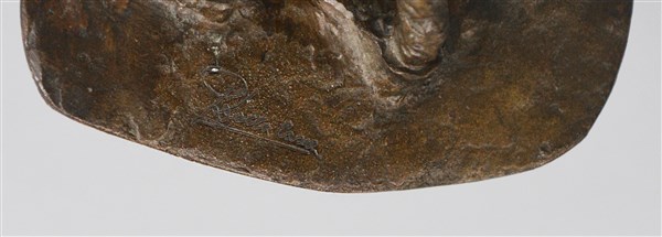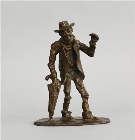 Firma indecifrata "Vecchio con ombrello" gruppo in bronzo (h cm 21) firmato alla base