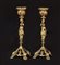 Coppia di candelieri in bronzo corpo a figura di donna a tutto tondo (h cm 29,5
