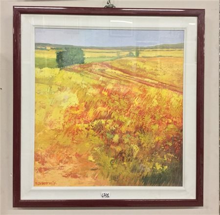 Nicola De Benedictis "Campi" olio su compensato (cm 52x50) firmato in basso a si