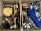 Due cartoni contenenti numerosi oggetti per la tavola in ceramica ed altri materiali (difetti)