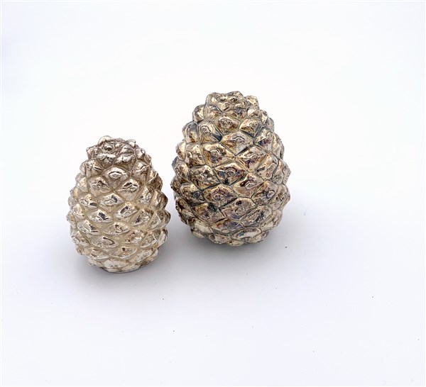 Lotto composto da due pigne rivestite in argento di cui una con accendino (g lordi 530) (difetti e mancanze)