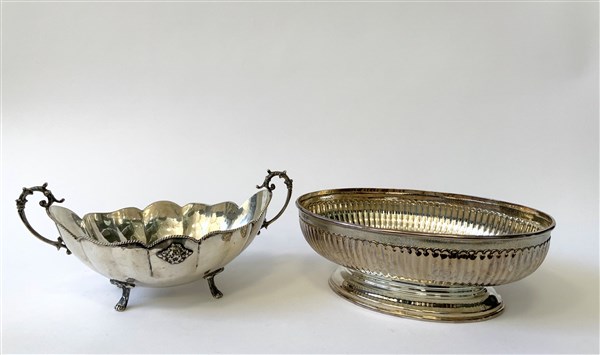 Lotto composto da due alzate centrotavola in argento, di forme diverse (g 1000) (difetti)