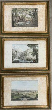 Ridolfi, sei litografie a colori raffiguranti paesaggi e figure (cm 28x44)secolo XIX , in cornici