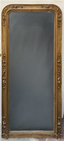 Specchiera con cornice in legno dorato e pastiglia con decoro a motivo floreale, secolo XIX (cm 84x190) (difetti)