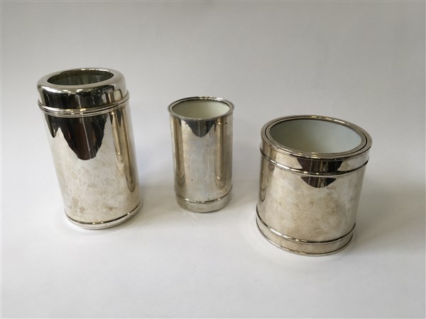 Lotto composto da tre glacette di forme e dimensioni diverse di cui una in argento e le altre due in metallo argentato (difetti)