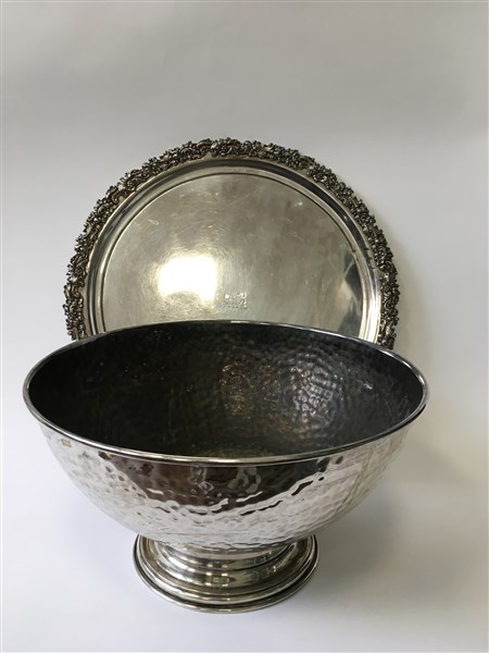 Lotto composto da un grande vassoio e un rinfrescatoio in metallo argentato