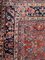 Tappeto Sarouk, Persia, prima metà del secolo XX. Decoro all over floreale, policromo su campo rosso rosato carico. Elegante bordura Herati su fondo blu notte (Difetti e rapature) (cm 384x284)