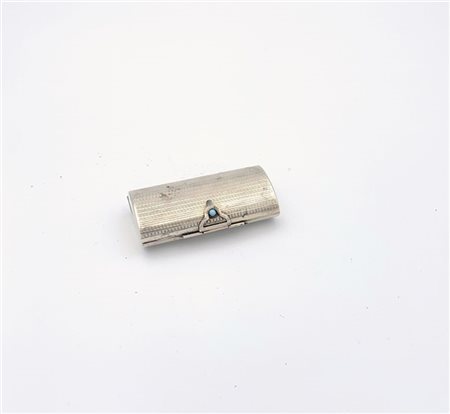 Tabacchiera in argento inciso con chiusura decorata con turchese cabochon. Tito