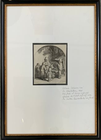 Adrian Van Ostade (1610-1685) "Il ciarlatano" acquaforte e bulino (mm 150x125 circa). In cornice