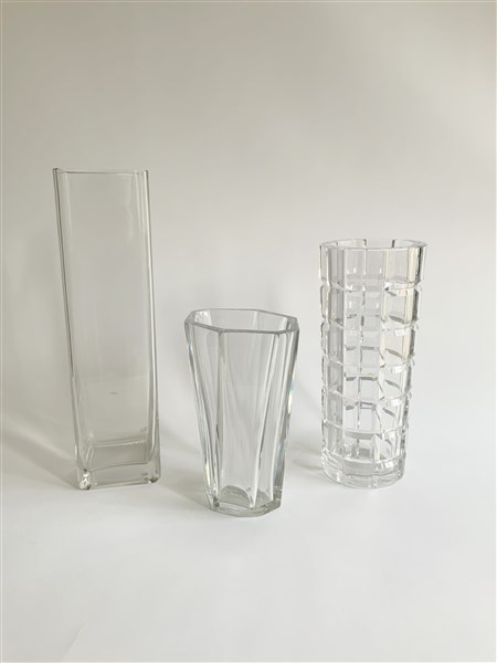 Lotto di tre vasi in cristallo di manifatture differenti (h max cm 45) (difetti)