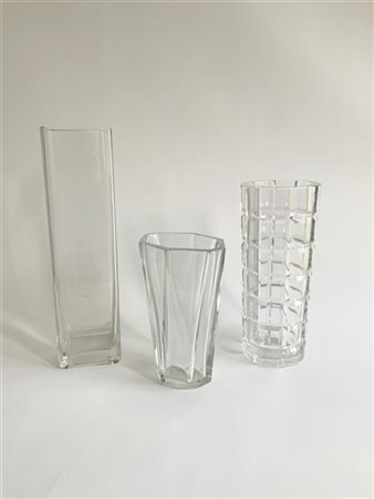 Lotto di tre vasi in cristallo di manifatture differenti (h max cm 45) (difetti
