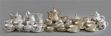 Manifatture diverse, lotto composto da parti di servizio in porcellana con decori policromi diversi (difetti e mancanze)