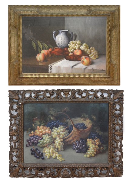 Lotto composto da due dipinti a olio su tavola (cm 50x70 circa), raffiguranti nature morte, di autori diversi, entrambi firmati