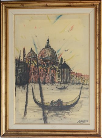 Abbruzzese, "Venezia" olio su tela (cm 70X50), firmato in basso a destra; titolato e firmato al retro. In cornice