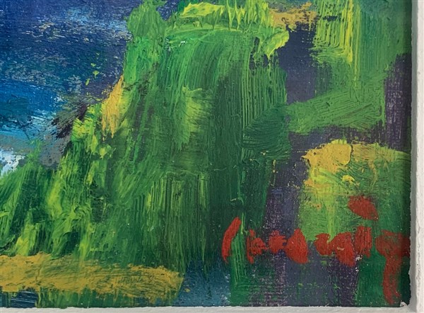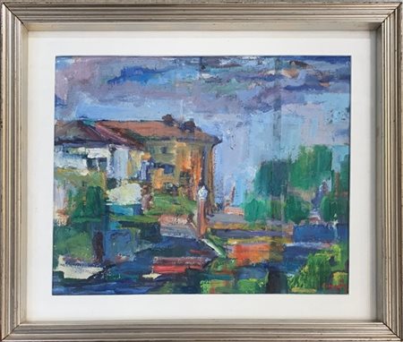 Firma indecifrata "Senza titolo" olio su cartone telato (cm 40x50) firmato in basso a destra. In cornice